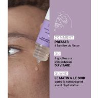 Pressez la base du flacon et appliquez 4 gouttes directement sur la peau du visage.