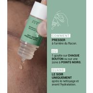 Notre recommandation : utiliser quotidiennement en cure d'acné localisée pour les boutons et les points noirs. Peut être utilisé jusqu'à ce que l'état de la peau s'améliore visiblement. Le soir, avant d'appliquer votre crème hydratante (ne pas mélanger).