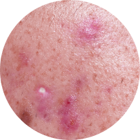 Réaction inflammatoire due à la prolifération de la bactérie C.acnes, à l’origine de lésions inflammatoires