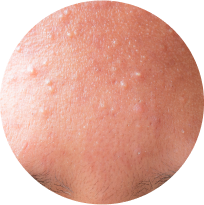 Hyperactivité de l’enzyme 5α réductase entrainant une production excessive de sébum. Résultat : une peau grasse en permanence