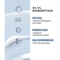 Nos ingrédients biomimétiques pour hydrater la peau : La GLYCÉRINE VÉGÉTALE PURE, composant naturellement présent dans la peau, augmente l'hydratation des couches superficielles de la peau en reproduisant l'action du NMF (Natural Moisturizing factor). Le XYLITOL favorise l'hydratation en reproduisant l'action du NMF.