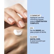 Appliquer sur une peau sèche et parfaitement nettoyée. A utiliser comme hydratant quotidien des peaux sèches, abimées ou fragilisées, le matin, le soir ou aussi souvent que nécessaire. Pour des mains douces au réveil, appliquer le soir en couche épaisse et laisser agir toute la nuit.