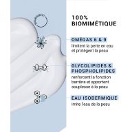 Nos ingrédients biomimétiques pour nourrir intensément la peau et préserver son film hydrolipidique : Les OMEGA 6 & 9, issus du beurre de mangue, nourrissent et protègent en mimant les lipides de la peau. Les GLYCOLIPIDES & PHOSPHOLIPIDES, lipides identiques à ceux de la peau, apportent des lipides biomimétiques qui nourrissent la peau et renforcent son film protecteur naturel.