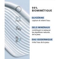 Notre ingrédient biomimétique pour hydrater la peau durablement : La GLYCÉRINE PURE ET VÉGÉTALE, composant naturellement présent dans la peau, augmente l'hydratation des couches superficielles de la peau en reproduisant l'action du NMF (Natural Moisturizing Factor).