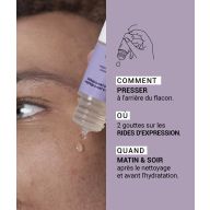 Notre recommandation : utiliser pendant 4 semaines en cure ciblée sur les rides d'expression. Matin et soir, avant d'appliquer votre crème hydratante (ne pas mélanger)
